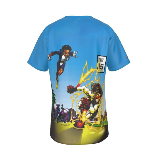 ICONIC BATMAN AND ROBIN SEARCHLIGHT COVER WITH FLASH ALL OVER PRINT SHIRTS