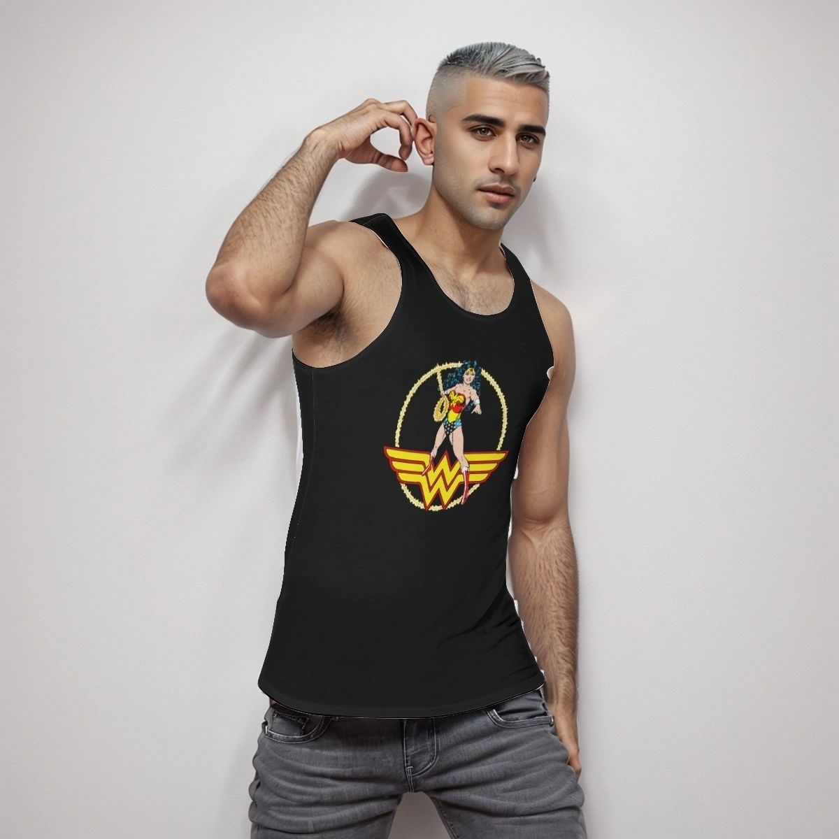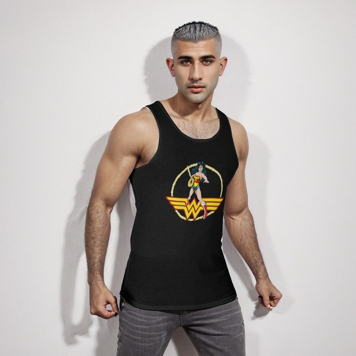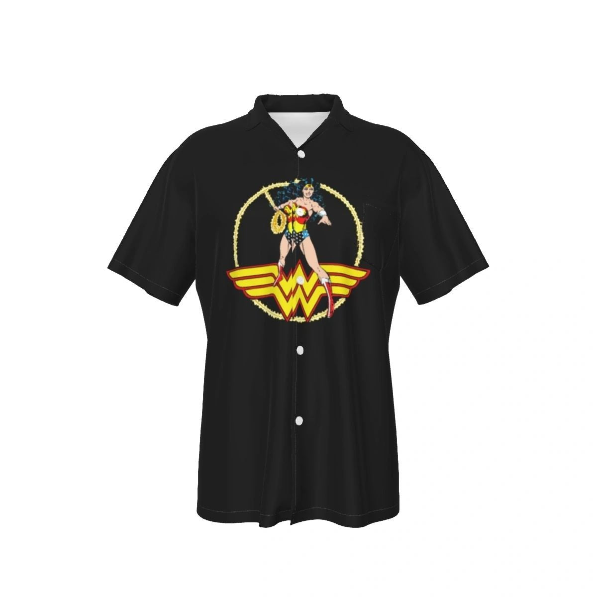 WONDER WOMAN PEREZ CUTOUT ALL OVER PRINT SHIRT, BUTTON UP & TANK